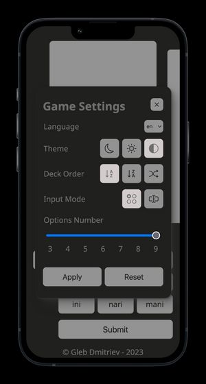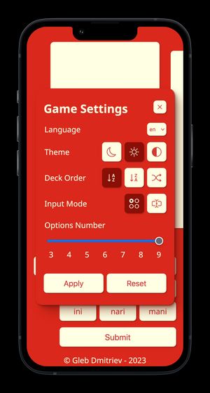 ΠΠ° Π±ΡΠΊΠ²Ρ Π΄Π°Π΅ΡΡΡ 3 ΠΏΠΎΠΏΡΡΠΊΠΈ. ΠΡΠΈ ΠΏΡΠ°Π²ΠΈΠ»ΡΠ½ΠΎΠΌ ΠΎΡΠ²Π΅ΡΠ΅ ΠΊΠ°ΡΡΠΎΡΠΊΠ° ΠΏΠ΅ΡΠ΅Π²Π΅ΡΠ½Π΅ΡΡΡ ΠΈ ΡΡΠ°Π½Π΅Ρ Π·Π΅Π»Π΅Π½ΠΎΠΉ, ΠΏΡΠΈ ΡΡΠ΅ΡΡΠ΅ΠΌ Π½Π΅Π²Π΅ΡΠ½ΠΎΠΌ ΠΎΡΠ²Π΅ΡΠ΅ - ΠΆΠ΅Π»ΡΠΎΠΉ. Π‘Π±ΡΠΎΡ ΡΠ΅Π·ΡΠ»ΡΡΠ°ΡΠΎΠ² ΠΏΠ΅ΡΠ΅Π²ΠΎΡΠ°ΡΠΈΠ²Π°Π΅Ρ Π²ΡΠ΅ ΠΊΠ°ΡΡΠΎΡΠΊΠΈ ΠΈ Π²ΠΎΠ·Π²ΡΠ°ΡΠ°Π΅Ρ ΠΏΠΎΠ»ΡΠ·ΠΎΠ²Π°ΡΠ΅Π»Ρ Π² Π½Π°ΡΠ°Π»ΠΎ ΠΊΠΎΠ»ΠΎΠ΄Ρ.